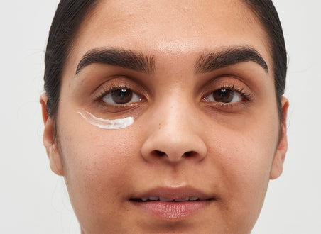 We recommend using eye creams after cleansing, toning and applying serums and before moisturising as part of your AM and PM routine. Use the pinkie finger to gently dab across the skin beneath the eye so you don’t put too much pressure or pull the skin.